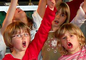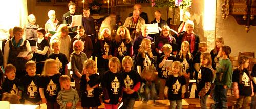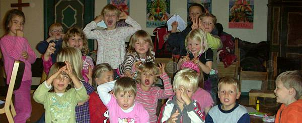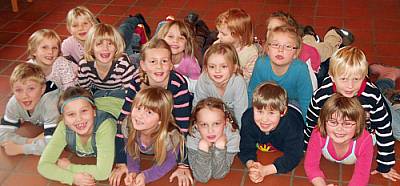 Die "Garding Music Chicken" (5 - 7jährige) gibt es seit September 2007. Singfreudige Kinder und auch einige Mama's treffen sich jeden Mittwoch von 15.00 - 15.30 Uhr im Gemeindehaus Garding zum fröhlichen Singen . Mit viel Begeisterung wurden schon einige "Mini-Musicals" aufgeführt. Ebenso fröhlich sind die Kids bei der Gestaltung von Familiengottesdiensten bei der Sache. |