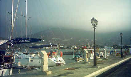 Freitag, 24. September, Andros, Hafen Gavrion Wir legen morgens um 7 Uhr ab um weiter nach Tinos zu fahren - laut Wetterbericht noch gut möglich. Doch schon kurz nach der Hafenmauer bekommen wir Wind und Welle voll auf die Nase, drehen schleunigst wieder um und beschließen, die angekündigten Starkwindtage hier zu verbringen.