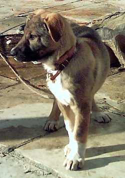 springt das Tier freudig auf mich zu - soweit es die kurze Schnur eben zulässt, an dem es angebunden ist. Knapp drei Monate mag das