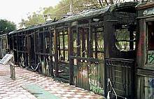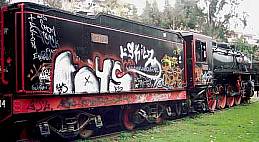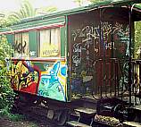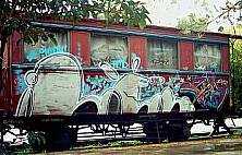 | Seit letztem Jahr haben Lokomotiven und Wagons zunehmend Farbe bekommen. Die Kids kritzeln und sprühen wie die Wilden. Ein Wagon ist im Sommer total ausgebrannt - sieht ziemlich traurig aus. | ||