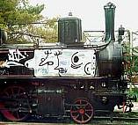 | Die Sonne lacht wieder, ich mache mit Pia einen Spaziergang durch den Park - einem "Freiluft- Eisenbahn-Museum". | ||