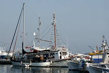 dem netten Hafen an. Ein paar Schritte entfernt ist ein sehr schöner Badesandstrand - weniger schön allesdings, daß Pia von dem