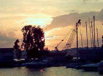"Elena" und "Cats" fahren nach der Brückenöffnung um 22.30 Uhr noch 24 sm weiter bis zum nächsten Hafen. Den Stress wollen wir uns nicht antun und steuern eine kleine Marina direkt bei der Brücke an, wo uns ein freundlicher Grieche längseits an ein größeres Segelschiff heranwinkt. Prima. Strom, Wasser, ruhiger Schlaf. Wir beschließen, mindestens einen Tag hier zu bleiben und genießen wieder einmal einen "typisch griechischen" Sonnenuntergang. |