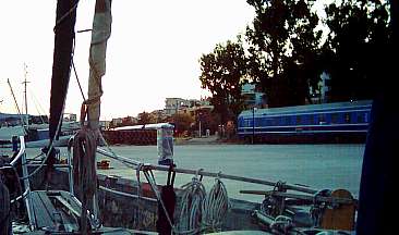 inzwischen freigewordenen, alten Holzsteg. Hier liegen wir ideal, sicher, ablandig im Wind. Auch die Wasserhähne in Hafennähe funktionieren (sofort wird Schmutzwäsche eingeweicht und der Wassertank befüllt) |