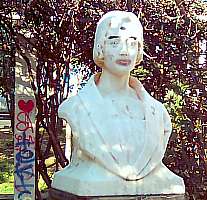 Stadt hier hat ihre Statuen. Unserem Hund fehlt dafür allerdings jedes Verständnis. Neulich stellte sich ein Pärchen ganz stolz vor einen marmornen Heldenkopf und bat einen Passanten, doch ein Bild von ihnen zu machen. Gerade in dem Augenblick, als der freundliche Aushilfsfofograf auf den Auslöser drückte, spazierte Pia neben den Sockel und pinkelte ins Gras. Hundepeinlich! |