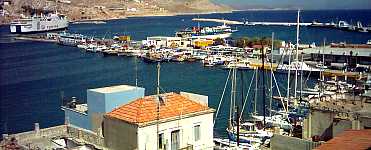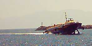 | Wir fahren von Telendos weiter nach Kalymnos (Stadthafen). Es herrscht reger Betrieb, Fähren und Flying Dophins kommen und gehen. | ||