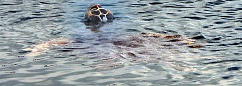| Ansonsten gibt es hier: Viele Moskitos, gigantische Sonnenauf- und Sonnenuntergänge, eine nette Altstadt, ein relativ nichtssagendes Geschäftsviertel, zwei riesige Kirchen ( abgesehen von den unterschiedlichen Bemalungen fast baugleich) und Carretta-Carretta - riesige Wasserschildkröten. Immer wieder tauchen sie im Hafenbecken auf, bevorzugt in der Nähe der Fischer, von denen sie mit unverkäuflichem Fang gefüttert werden. | ||