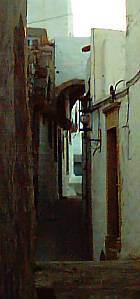 schlängeln wir uns durch enge Gässchen mit Arkaden, bis wir hoch oben