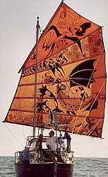 Doro mit ihrem 7m-Tschunkenrigg-Segelbötchen "Golden Wind". Ein sehr nettes, erfahrenes Ehepaar, mit denen wir gerne immer wieder mal ein "Schwätzchen" halten.