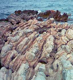 | Sonntag, 5. Juni: Das Wetter ist herrlich. Die Sonne scheint und lädt unsere Solarzellen, der Wind bläst kräftig und kurbelt das Windrad an. Prima! Ich mache einen Sonntagmorgenspaziergang mit Pia. In der Bucht hat es sehr viel Lava-Gestein in unterschiedlichsten Formationen. Die Buchtseite, wo wir marschieren, läuft sehr flach aus und hat unter Wasser