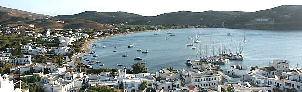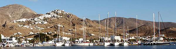 beschäftigt, ihre kreuz und quer geworfenen Anker und Ketten zu entwirren. Neben uns am Pier liegt ein deutsches Seglerehepaar mit ihrer Sunbeam 40. Auch sie waren gestern unterwegs und wurden von dem Wind zwei mal flachgelegt. Sie fragen uns, ob wir die nächsten Stunden an Bord wären - falls Boote einlaufen. 4 x wurde ihnen seit gestern Abend der Anker ausgerissen. Sie wollten sich nur noch die Chora auf dem Berg ansehen - und dann fluchtartig dieses Pier verlassen. Na, da sind wir ja mal gespannt... |
