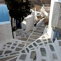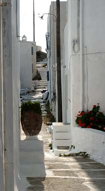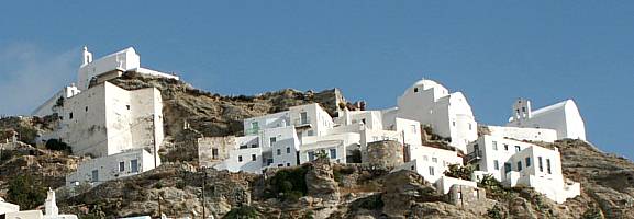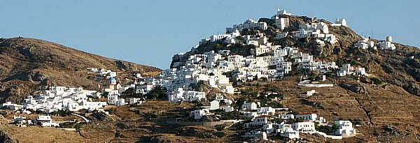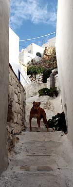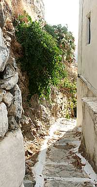 Morgensport hinauf zur Chora Es verkehren zwar regelmäßig Busse, aber Pia braucht schließlich auch Bewegung. Fünf Kilometer sind es - auf der Straße. Aber es gibt ja noch den guten, alten Maultierpfad. Die Stadt ist auf steil herabfalllenden, teilweise überhängenden Felsen gebaut, es sieht teilweise richtig dramatisch aus.