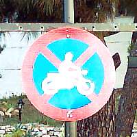 | Spaziergang durch die Stadt: Beim Eingang zur alten Burganlage auf der kleinen Halbinsel entdecke ich das erste Motorradverbotsschild seit unseres Griechenland- aufenthalts. Und Mc Donalds ist auch schon da.... | ||