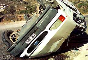 hat den Sturz des Autos den Hang hinunter ohne größere Verletzungen