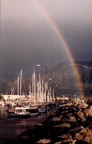 Spät in der Nacht kommt die Müllabfuhr. Thomas läuft ihnen freudig entgegen um den Fang des Tages zu präsentieren, den sie doch bitte mitnehmen sollen. Die Begeisterung der beiden Griechen über unsere Säuberungsaktion ist so groß wie meine bisherigen Angelerfolge. Verständnislos blicken sie auf den Müllberg - auf uns - auf die Schiffe. Zwei der Säcke werden mit vereinten Kräften auf den Pickcup gehievt, der dritte steht in einer fest am Pier verschraubten Mülltonne. Kurzerhand wird die ganze Plastiktonne aus der Verankerung gerissen und auch dieser Sack noch auf die Ladefläche gekippt. Thomas vertrollt sich kopfschüttelnd wieder auf’s Schiff, draußen frotzeln die Angestellten noch eine ganze Weile auf Griechisch etwas vor sich hin und amüsieren sich köstlich. Wahrscheinlich wäre es für sie nicht viel verwunderlicher, wenn wir als nächstes die Luft filtern würden. Regen – Wind – Regen – Gewitter – Regen – Sturm – Regen – Hagel – Regen – 5 Minuten Sonnenschein J! Mit Gummistiefeln und Ölzeug gar nicht so trist wie es klingen mag; und dass es an manchen Stellen im Schiff bei stärkerem Regen hereintropft hat eindeutig den Vorteil, dass man weiß, wo man noch überall abdichten muss. Am Wohnmobil hat Thomas dies schon erfolgreich praktiziert, und bis die Luke über der Herdplatte die gleiche Therapie erfährt kommt eben beim Kochen der Deckel auf Topf und Pfanne. Sonderlich kalt ist’s nicht – nur die griechische Bevölkerung schlüpft bei Temparaturen unter 20°C umgehend in Winterjacken, wenn’s unter 15°C geht kommen Pelzmantel und Daunenjacken zum Einsatz. Wir kommen uns wirklich wie die Exoten vor, wenn wir in T-Shirt und Weste bei Sonnenschein durch Kalamata spazieren und um uns herum der griechischen Kleidung nach Eiszeit herrscht |